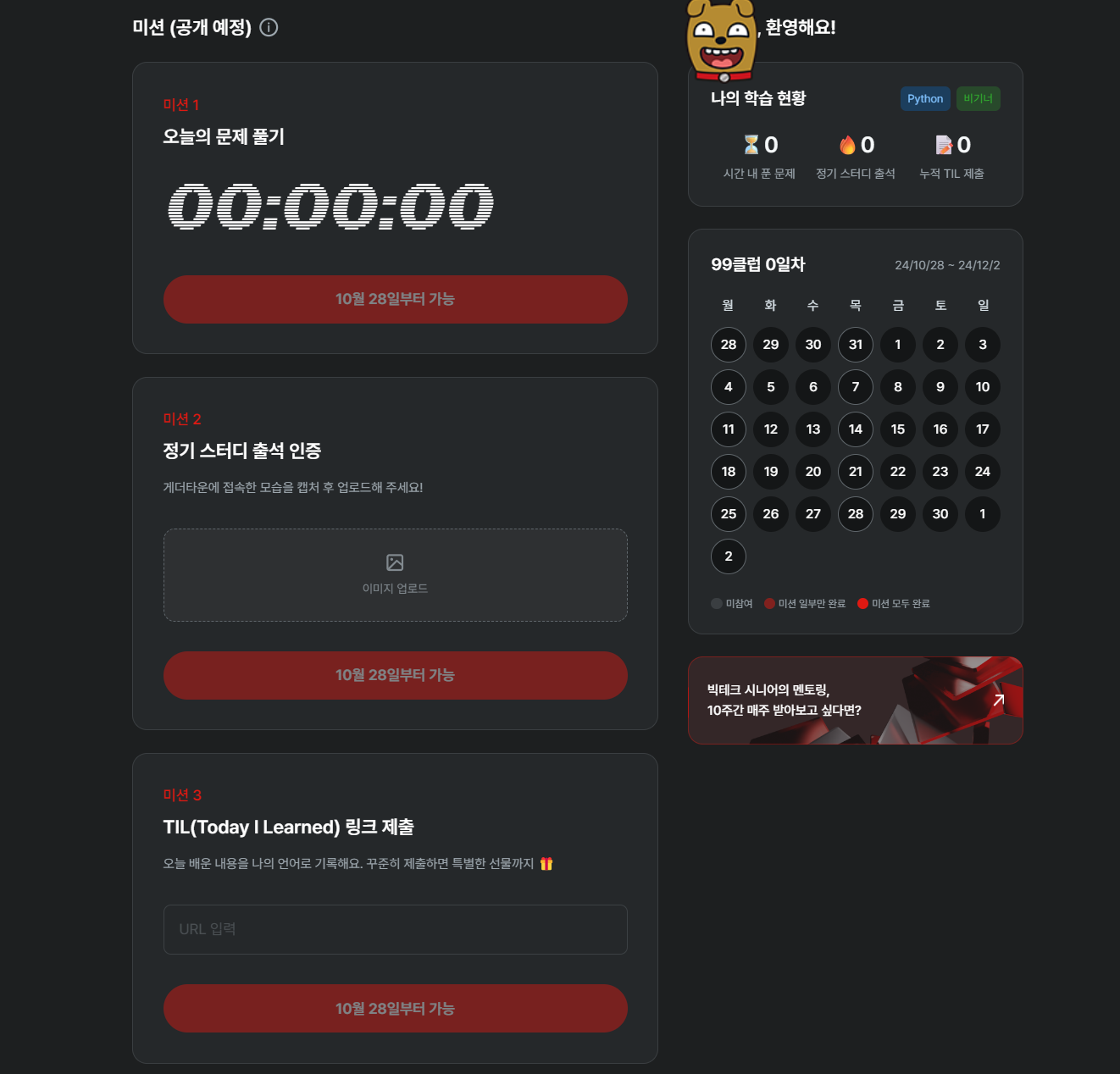 10월28일(월)부터 매일 오전11시마다 문제 1개가 올라올 예정인데,