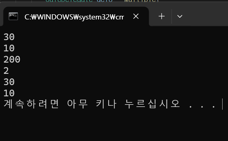 // 20-10 = 10이 결과값에 저장되고 출력 시