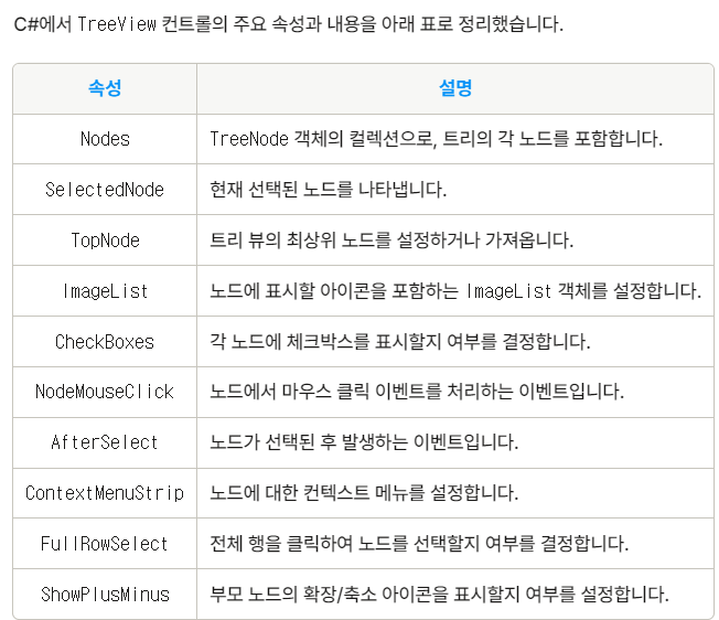 : 트리뷰는 데이터나 정보를 계층적 구조로 보여주는 컨트롤이다.