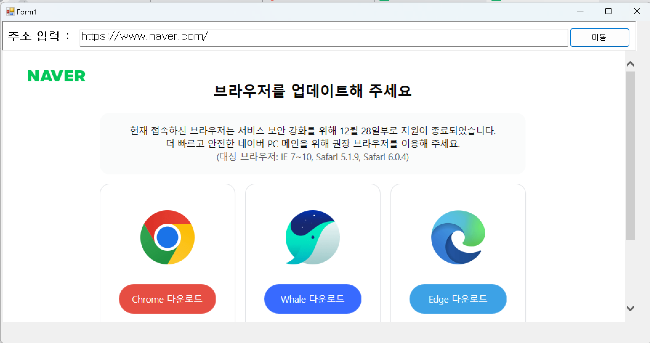 웹 브라우저 컨트롤 1개