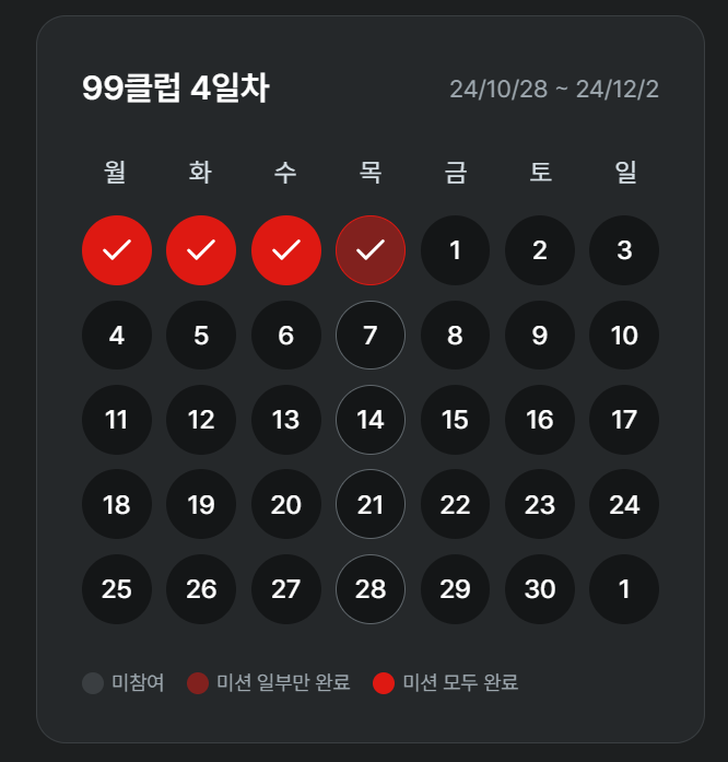 | 99클럽 코테 스터디 5일차 TIL + 오늘의 학습 키워드 : 해시 (0) | 2024.11.01 |