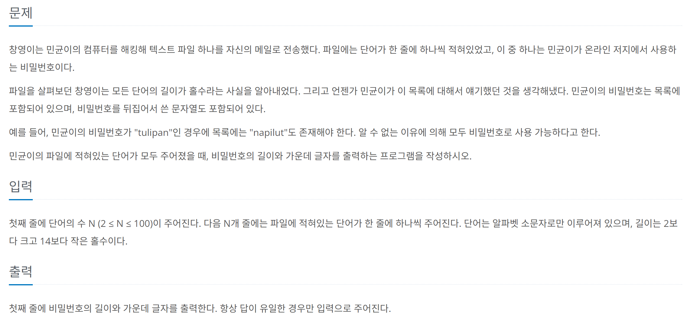 백준 9933번 : 민균이의 비밀번호