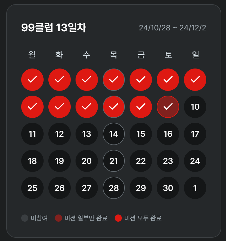 | 99클럽 코테 스터디 14일차 TIL + 오늘의 학습 키워드 : 큐 (0) | 2024.11.10 |