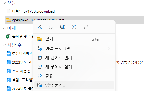 압축파일을 풀고 원하는 위치에 둔 다음
