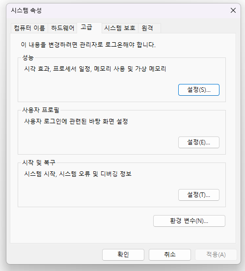 > 환경 변수 JAVA_HOME